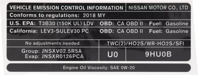 Emission Label - Nissan (14805-9HU0B)